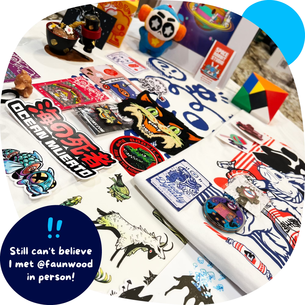 So I was scrolling on IG (like ya do) and noticed a mutual was in town and exhibiting his art at a convention. I immediately bought my ticket that night and the next day I attended my first Collectedcon. The place was flooded with remarkable artists that inspired me with their unique work. Among these artists was @zardapuya, the mutual I mentioned earlier. It was truly a privilege meeting such a skilled and kind artist. We chatted at length about projects, our process, software, etc. and even tossed around the idea of a collaboration project 👀 I also met a long-time art hero of mine, @faunwood, which was an incredible surprise.